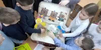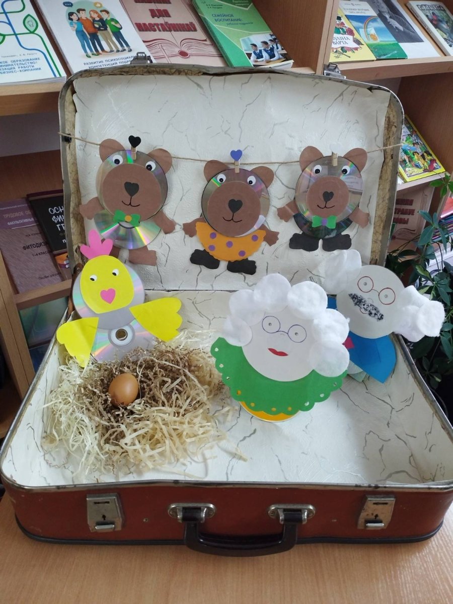 Чемодан – вещь таинственная… С ним путешествуют. В нём хранят разные вещи. В нашем чемодане сегодня герои сказок "Три медведя" и "Курочка ряба".
