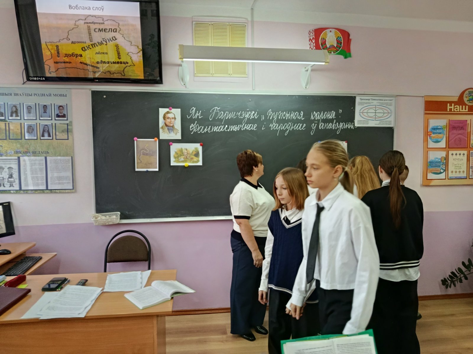 У рамках метадычнага тыдня ў 6"Б"класе быў праведзены ўрок па беларускай літаратуры на тэму "Ян Баршчэўскі "Вужыная карона ". Для ўвядзення ў тэму ўрока настаўнік выкарыстоўваў ілюстрацыйную загадку. Пры праверцы дамашняга задання была праведзена гульня " Пазнавальны рынг". Пры вывучэнні новага матэрыялу выкарыстоўвалася эўрэстычная гутарка, дыскусія на тэму " Каштоўнасці", пераказ і выразнае чытанне эпізодаў, характарыстыка героя. Вялася работа з тэкстам, знаходзілі фальклорныя і міфалагічныя элементы.