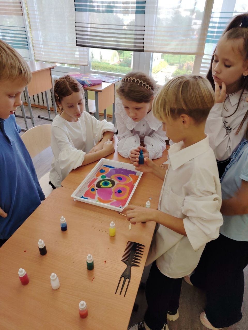 - Творческая мастерская «Веер в технике Эбру».Ребята создали уникальные заготовки для традиционных китайских вееров, освоив древнюю технику рисования на воде. Они узнали, что веер в Китае — это больше, чем аксессуар: это символ мудрости, защиты и произведение искусства.