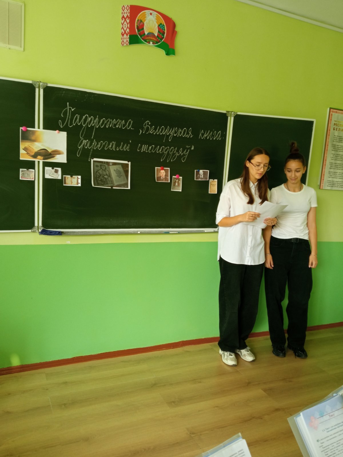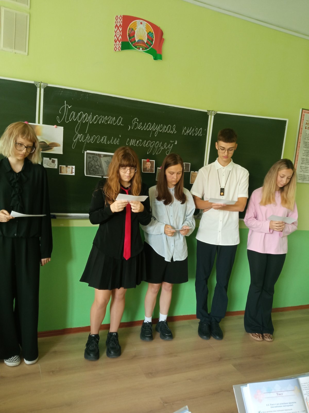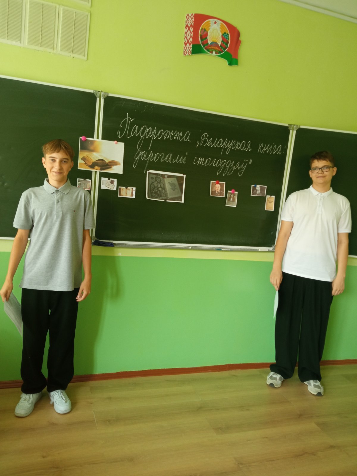Да Дня беларускага пісьменства і друку для вучняў 9 класа было праведзена падарожжа " Беларуская кніга:дарогамі стагоддзяў".Нагадалі гісторыю свята. Далей размова ішла пра Францыска Скарыну, Ефрасінню Полацкую, Янку Купалу, Якуба Коласа. У заключэнне вучням была прапанавана літаратурная віктарына.