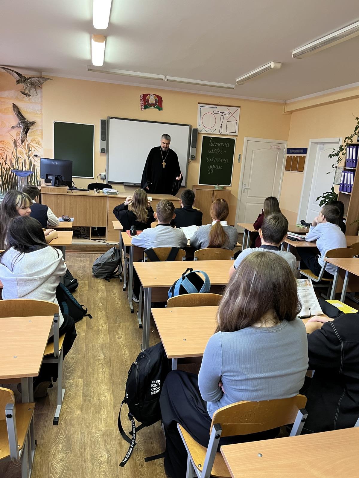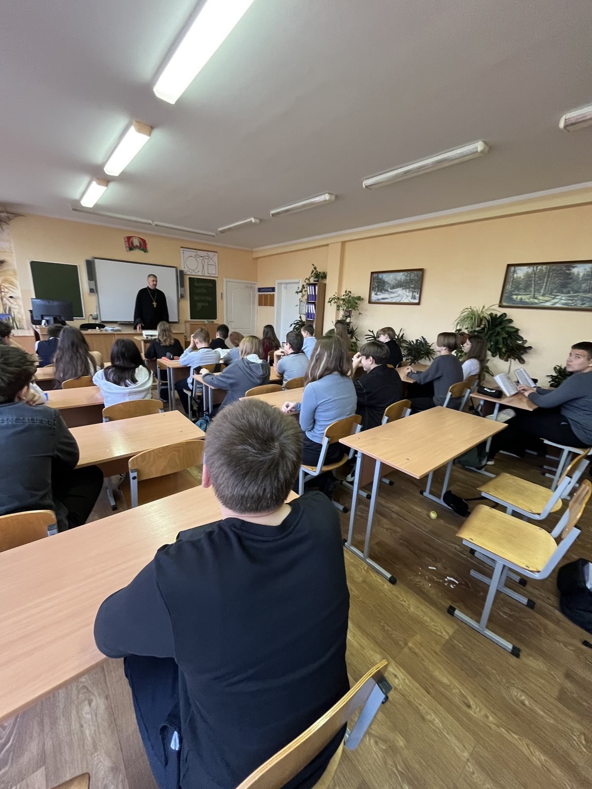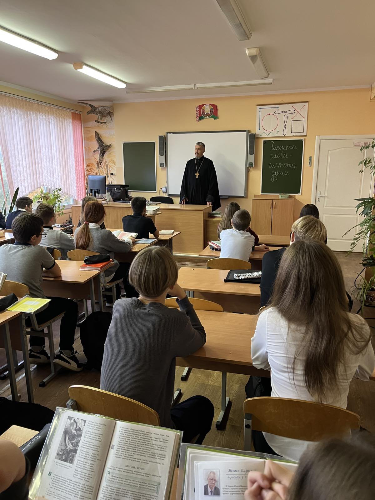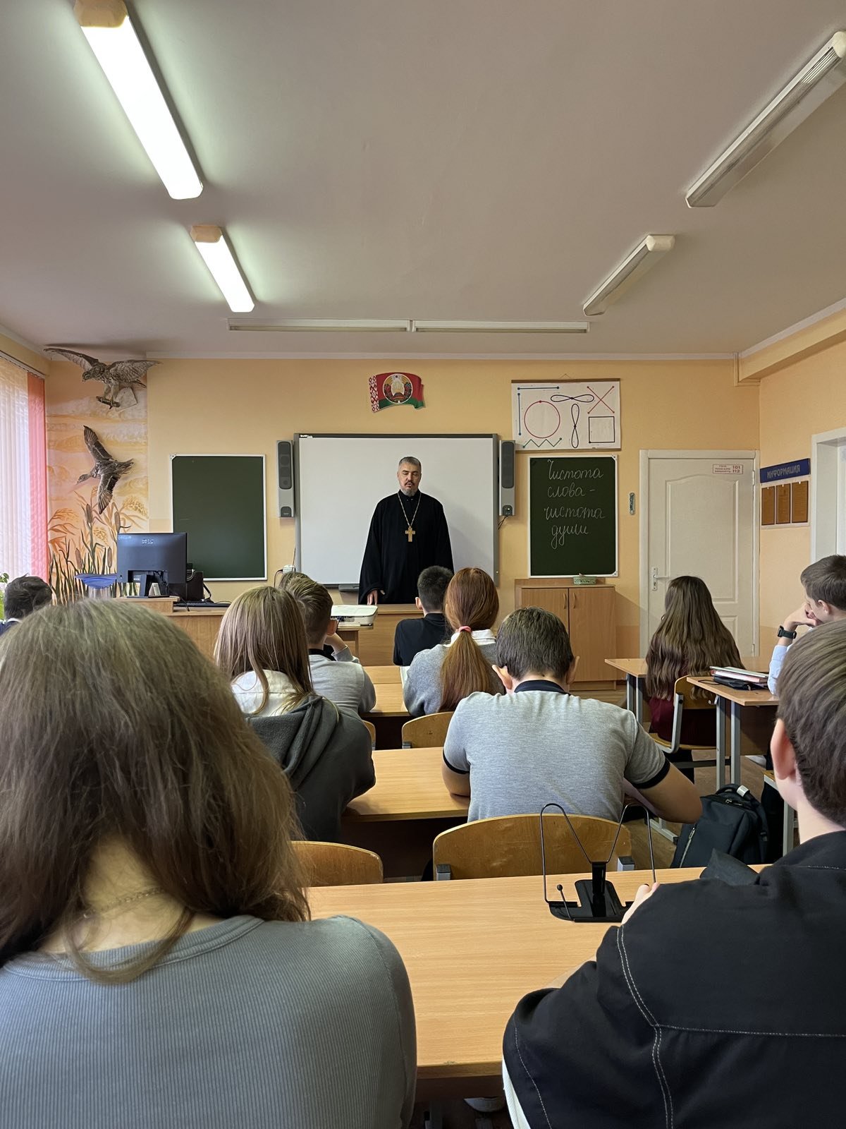 📅17 октября в гимназии №2 г. Волковыска прошла тёплая и душевная встреча учащихся 8 класса с клириком прихода храма Святителя Николая Чудотворца г. Волковыска иереем Георгием Суворовым по теме «Чистота слова - чистота души».🙏