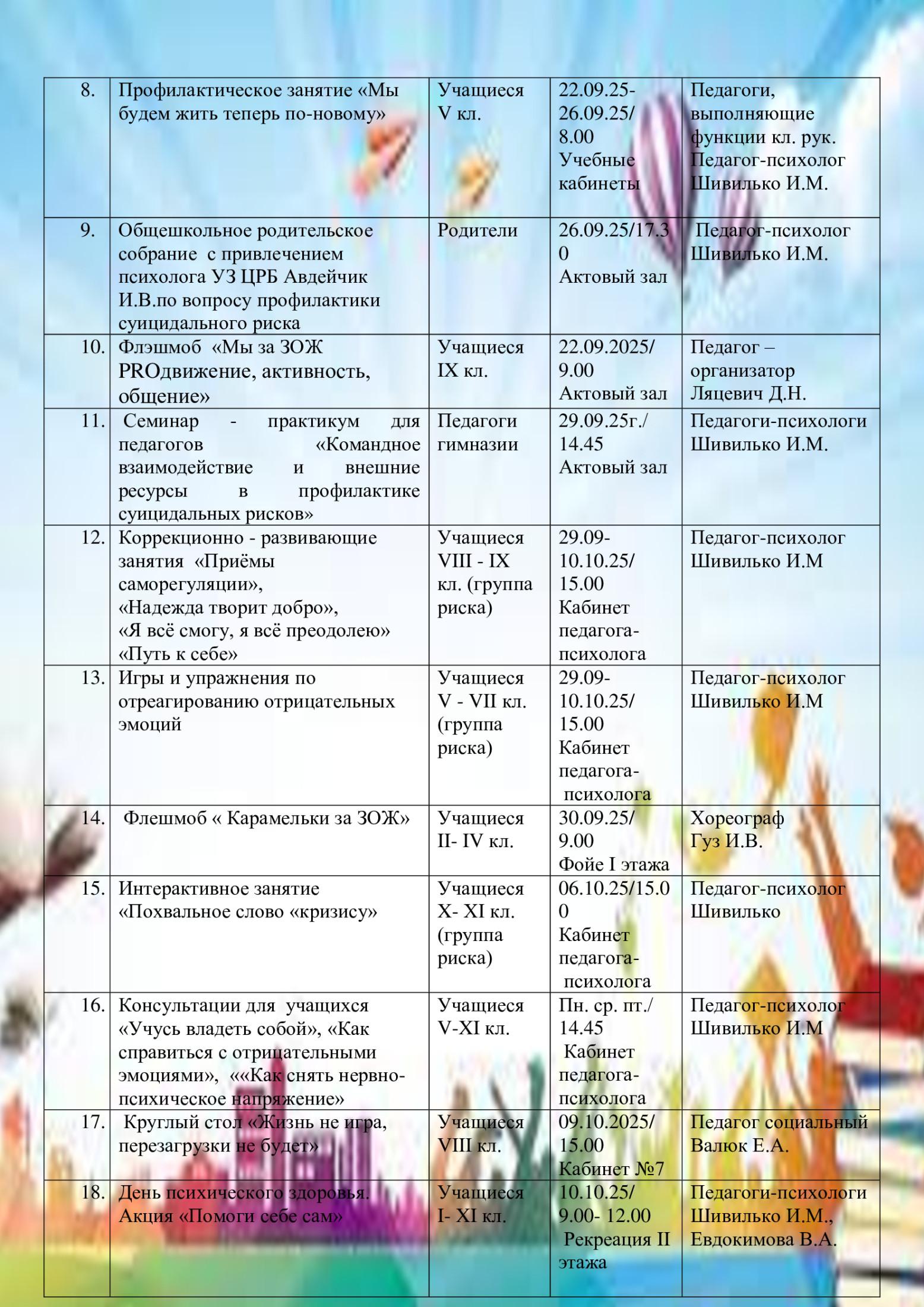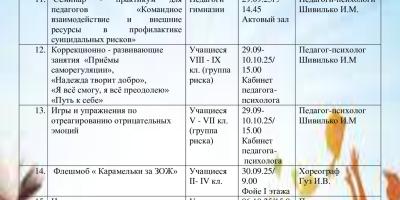 Главная Новости План месячника по профилактике кризисных состояний несовершеннолетних ГУО «Гимназия №2 г. Волковыска» с 10.09.2025 по 10.10.2025г. 2025/2026 учебный год План месячника по профилактике кризисных состояний несовершеннолетних ГУО «Гимназия №2 г. Волковыска» с 10.09.2025 по 10.10.2025г. 2025/2026 учебный год 09 сентября 2025