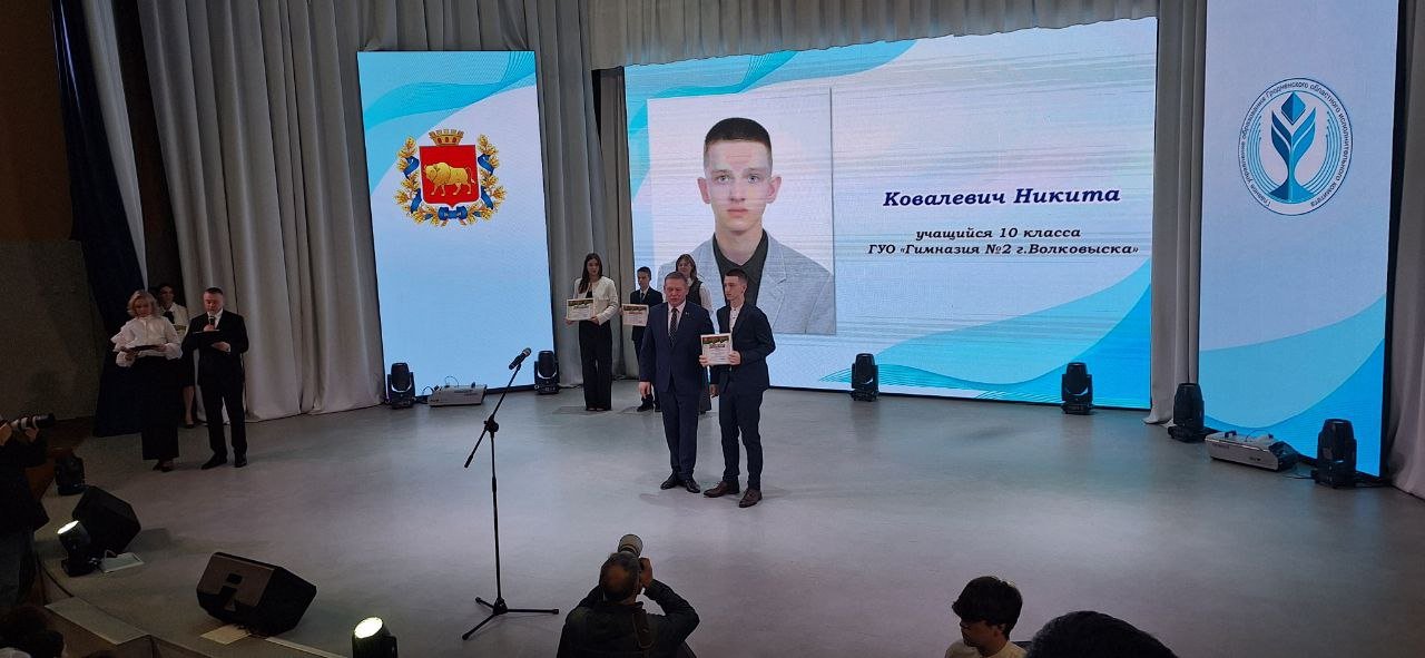 В этом году лауреатами премии стали учащиеся #gimn2volk Никита Ковалевич и Мария Гаргун — талантливые ребята, чьи достижения в интеллектуальной и научной сферах служат примером для сверстников.