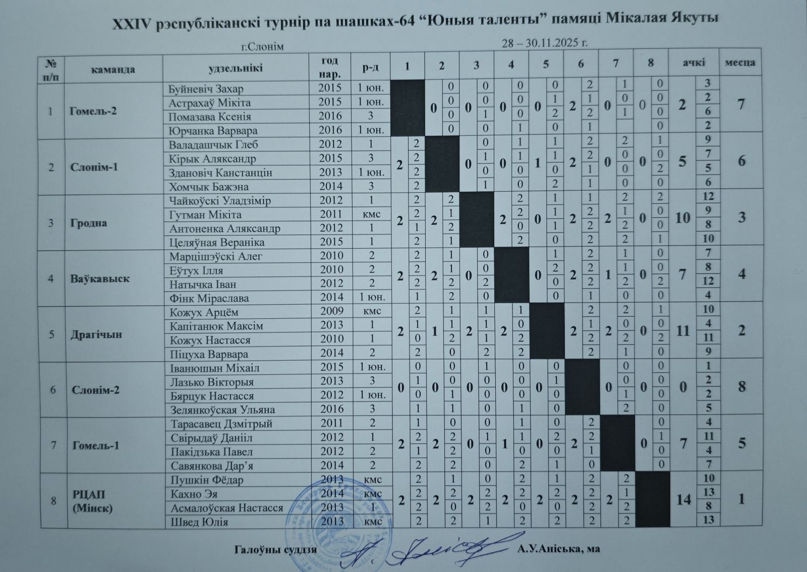 С 28 по 30 ноября в Слониме проходил XXIV Республиканский командный турнир по шашкам-64 среди молодёжных команд «Юные дарования» памяти Николая Якуты.