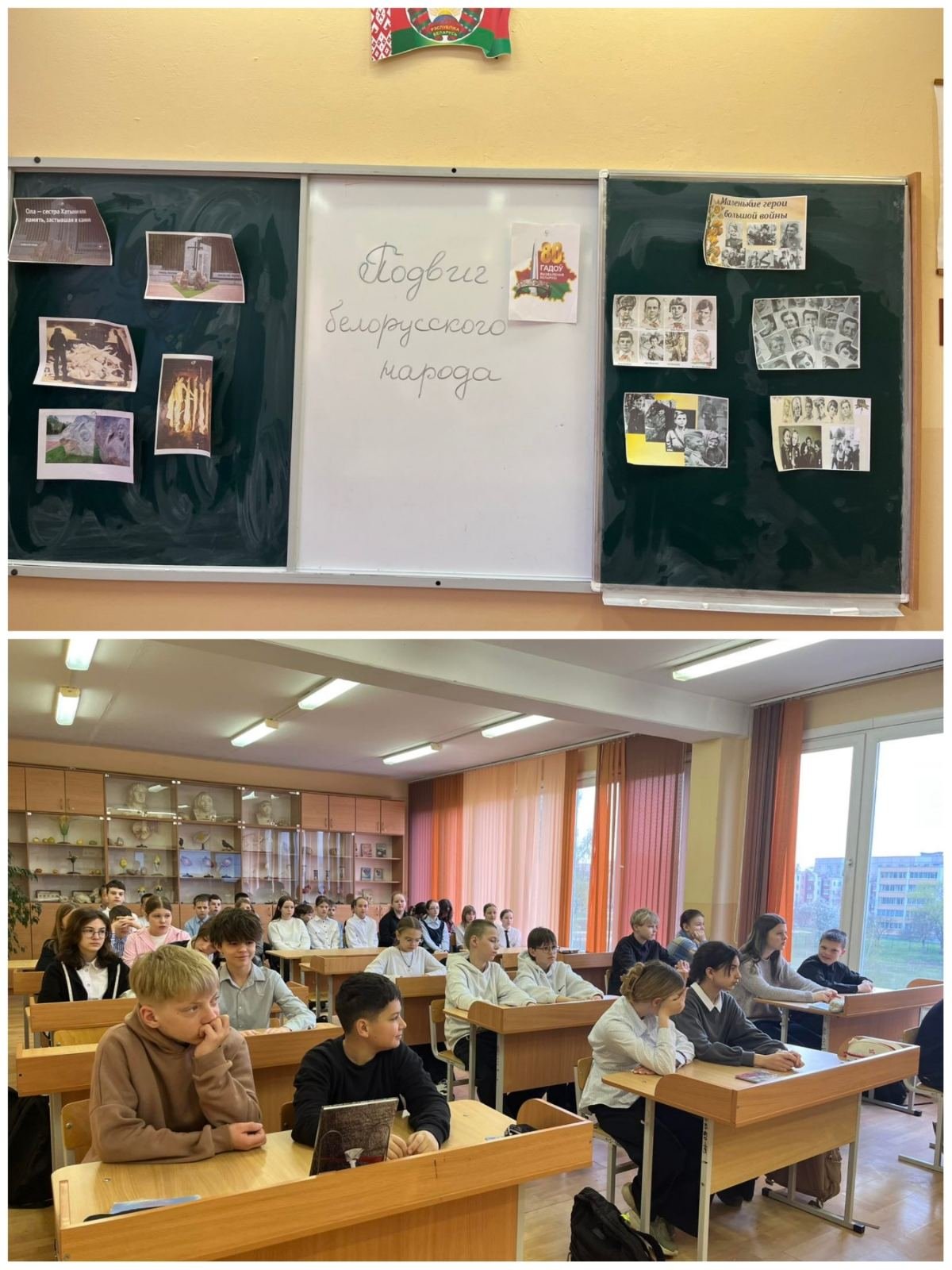 Мы объединили два шестых класса, чтобы поговорить о том, что нельзя забывать — о подвиге белорусского народа.