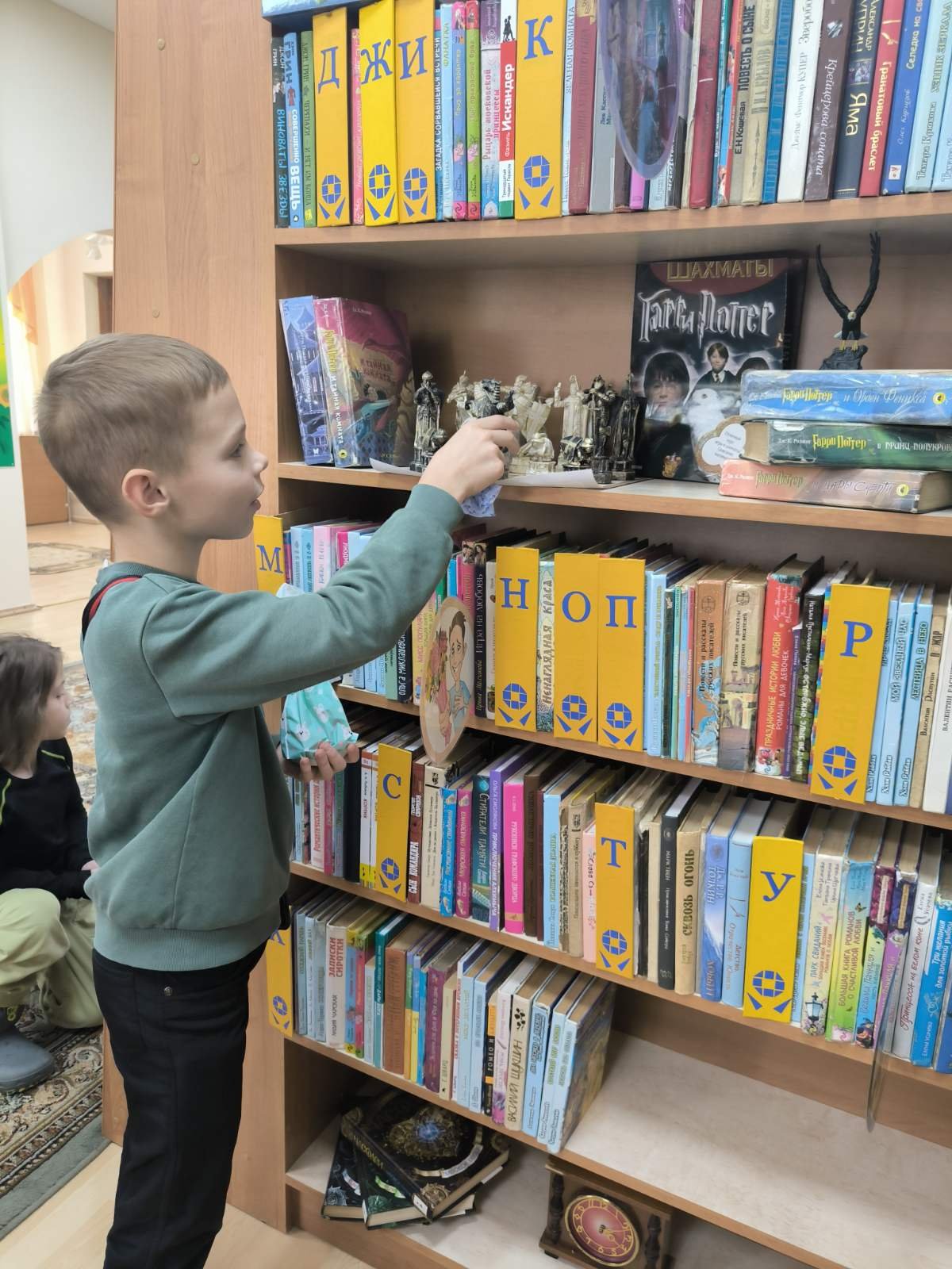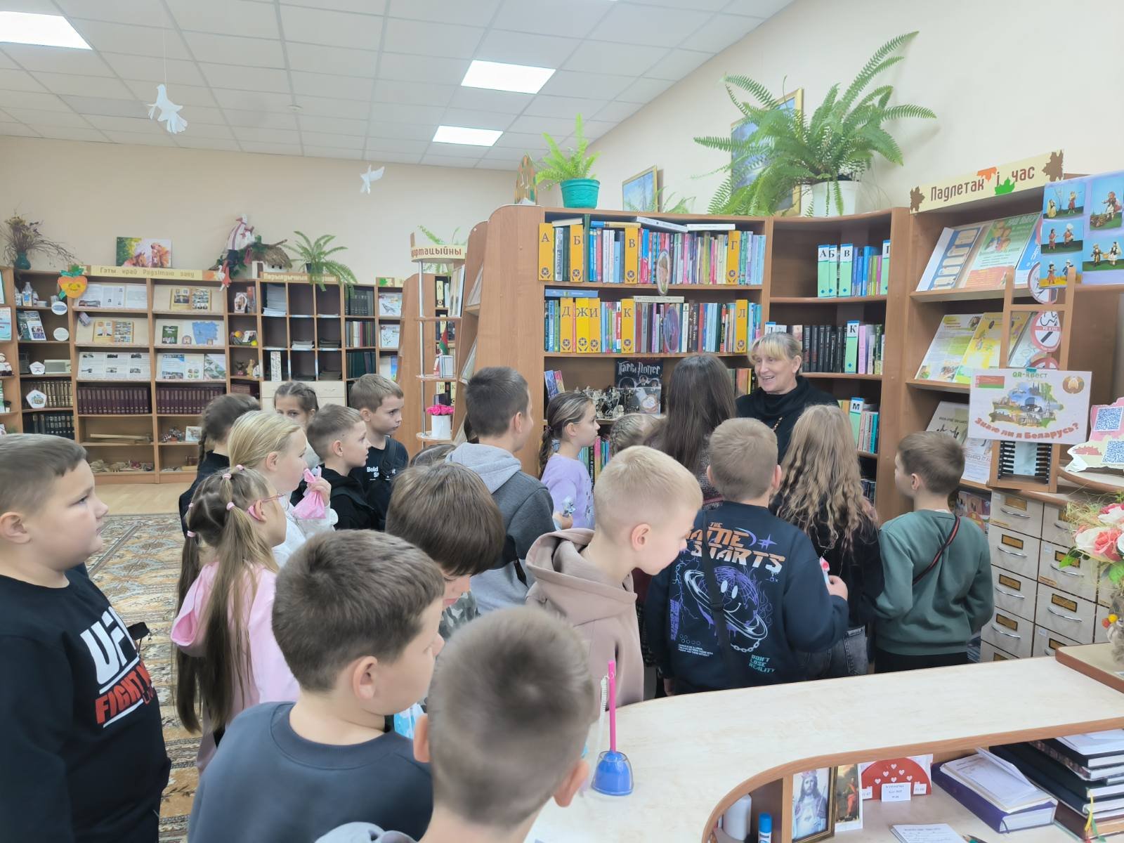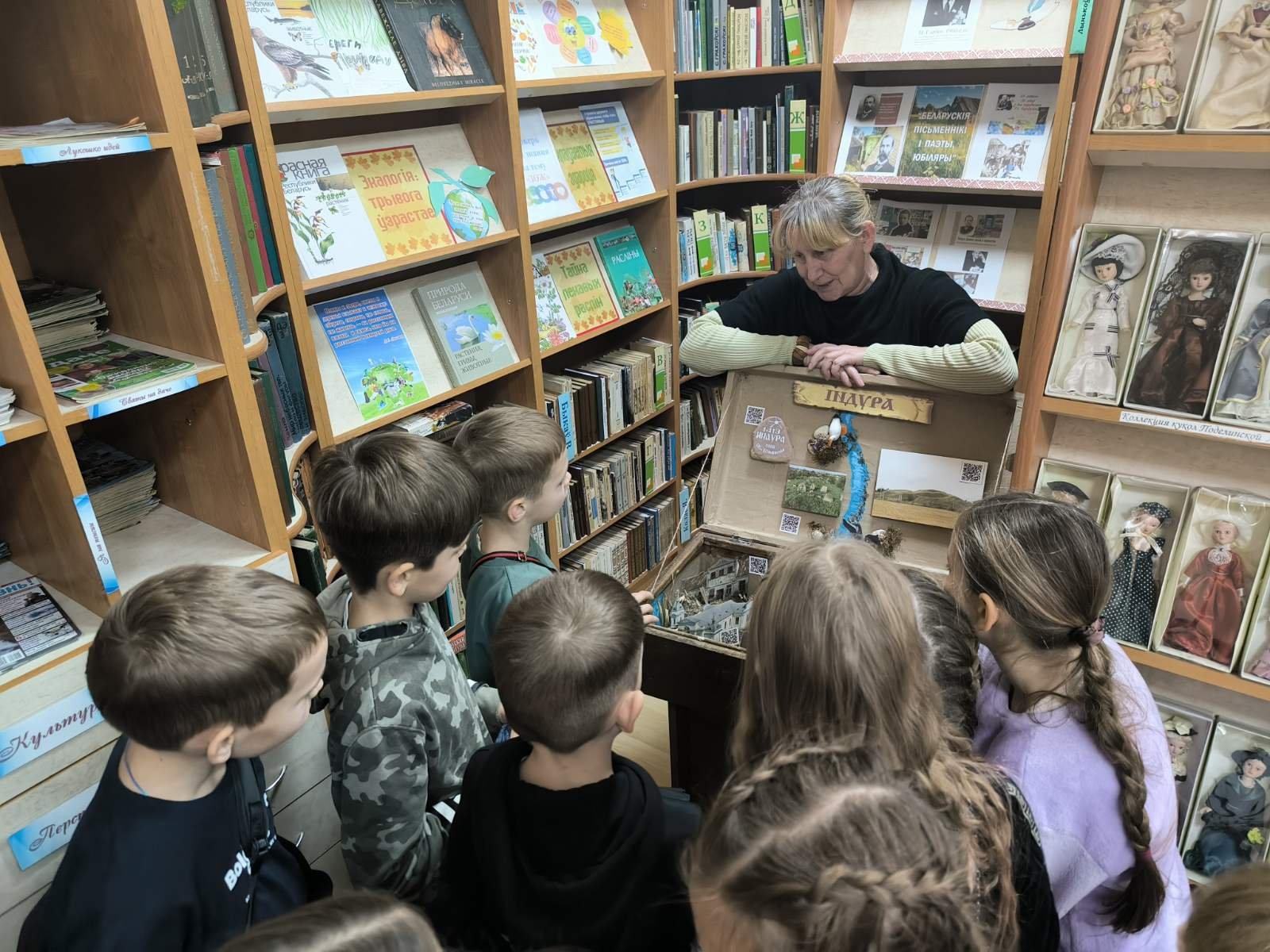 Затем нас пригласили в библиотеку, где рассказали легенду про аг. Индуру, ребята увидели макет этой местности в уменьшенном виде с рекой, зданиями, дорогами. Учащиеся заинтересовались шахматами Гарри Поттера, мягкими игрушками разных времён. А ещё нам показали книгу 1900г. издания. Это был сборник стихов Я.Коласа.
