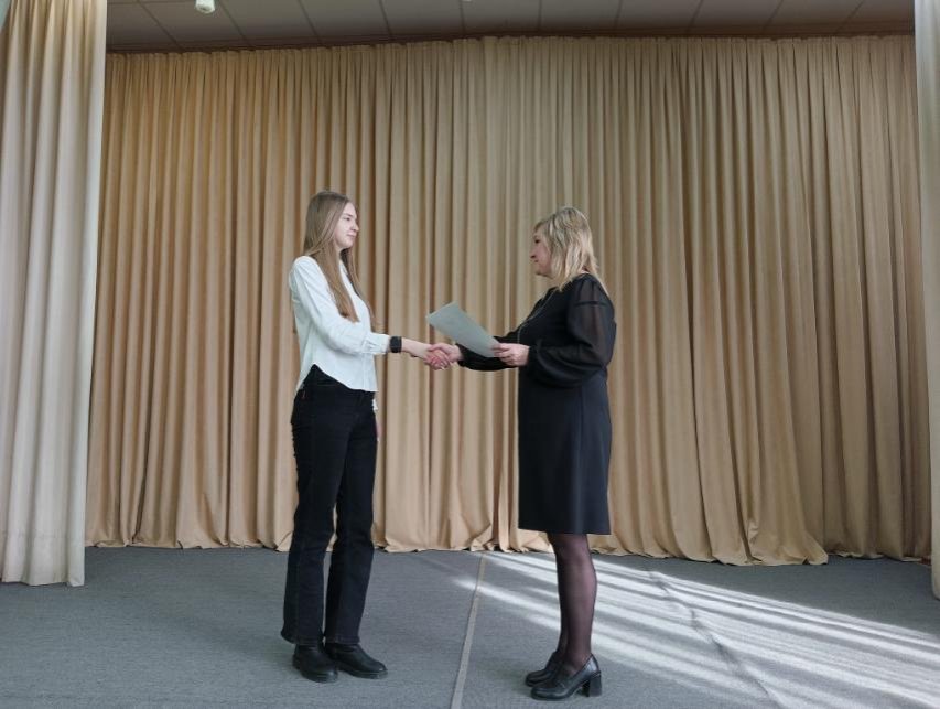 После подведения итогов, почетное I место заняла Варвара Макарова, учащаяся X "Б" класса, которая представит нашу гимназию на втором отборочном этапе конкурса — районном.
