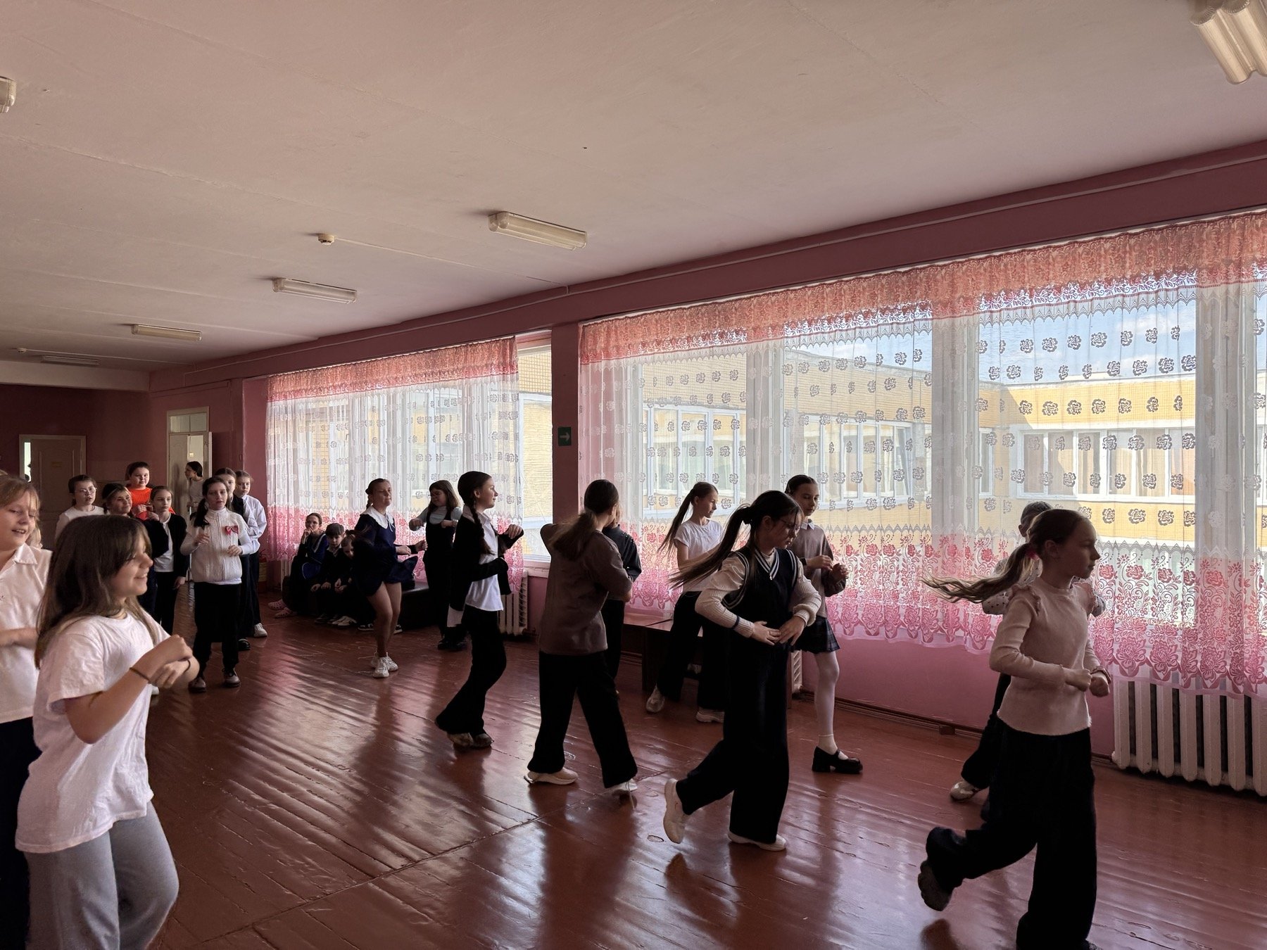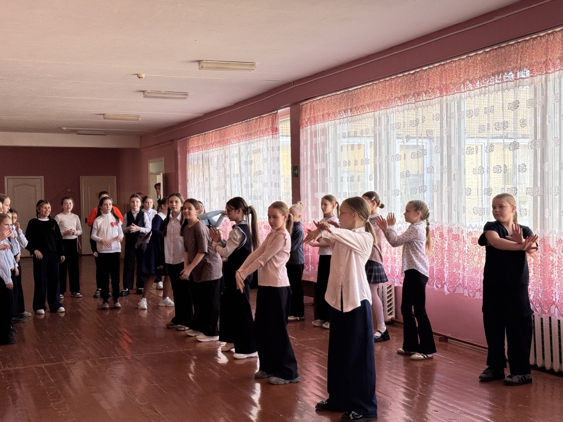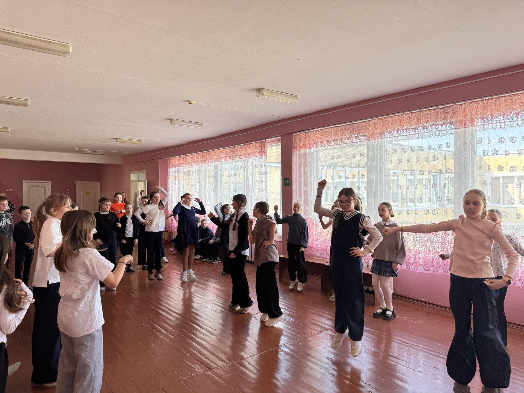 Под зажигательную музыку ребята дружно исполнили заранее разученные движения. Атмосфера царила по-настоящему солнечная: улыбки, хорошее настроение и море энергии объединили всех участников. Каждый четвероклассник смог проявить свои творческие способности, почувствовать ритм и стать частью единого танцевального коллектива.