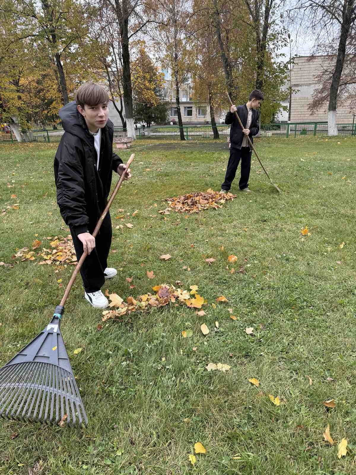 Учащиеся гимназии дружно вышли на уборку территории: собирали листву, приводили в порядок клумбы, украшали школьный двор. А ещё наводили порядок в классных кабинетах — ведь чистота начинается с собственного пространства! 🧼📚