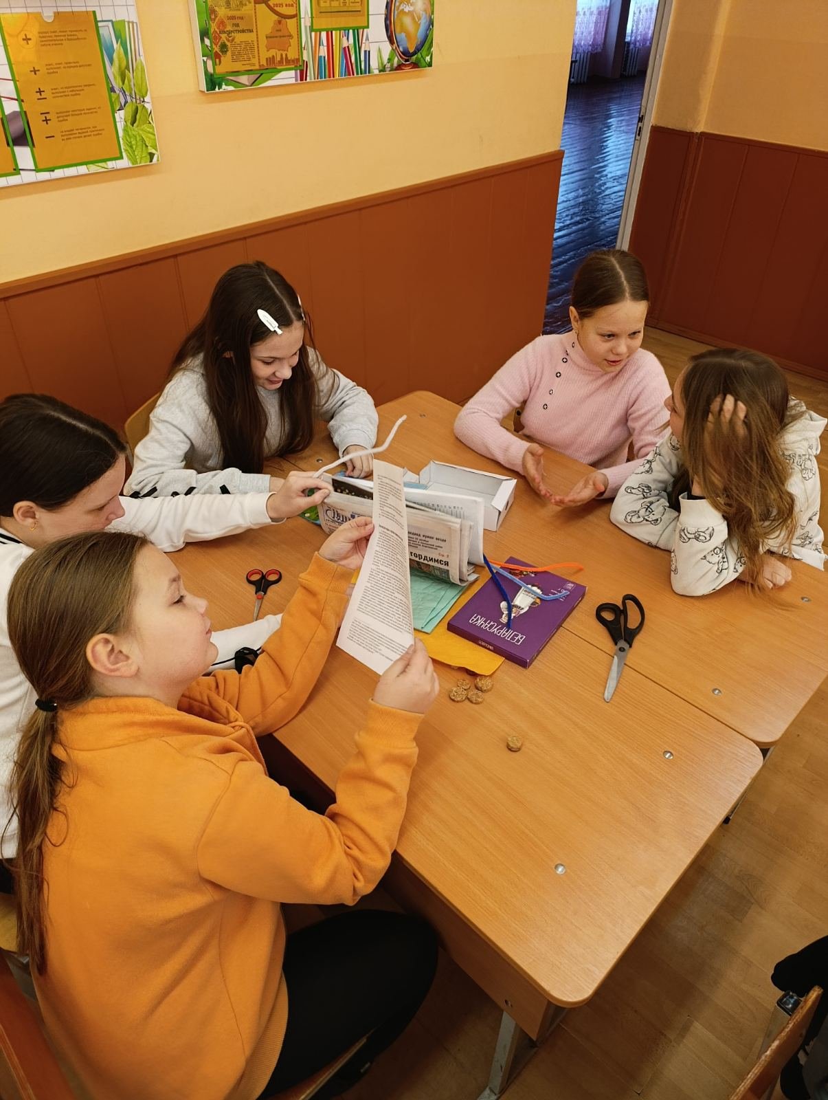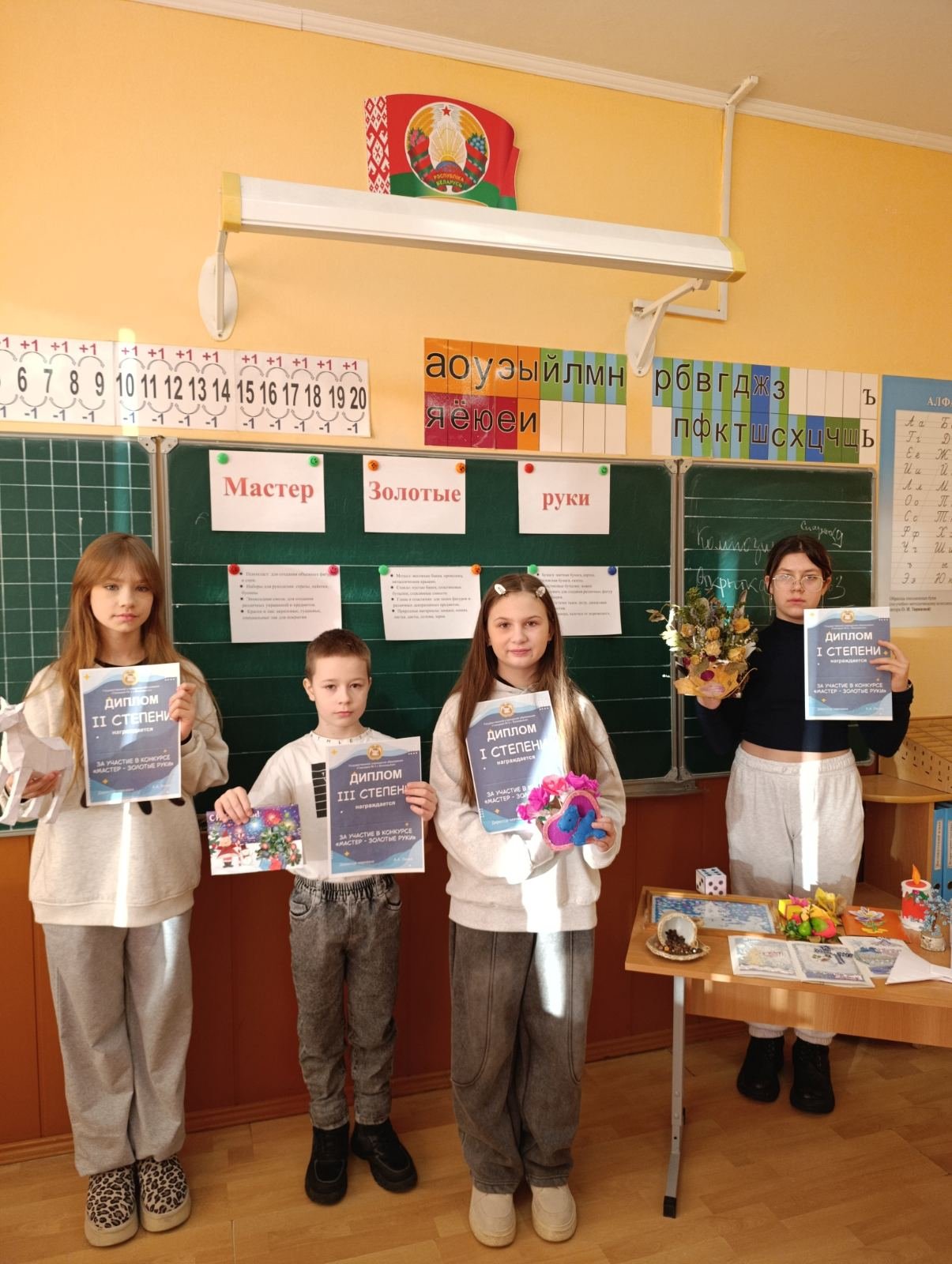 В субботу для учащихся V и IV классов в рамках проекта "Пионеры-октябрятам, прошел конкурс поделок из бумаги и природных материалов "Мастер золотые руки". На старте конкурса была организована беседа, в ходе которой ребята обсудили, какие материалы можно использовать для создания поделок. Затем, разделившись на команды, ребята с интересом творили настоящие шедевры, проявляя яркие способности и оригинальность. В конце состоялось представление своих идей. Награждение стало приятным финалом: лучшие работы были отмечены дипломами.