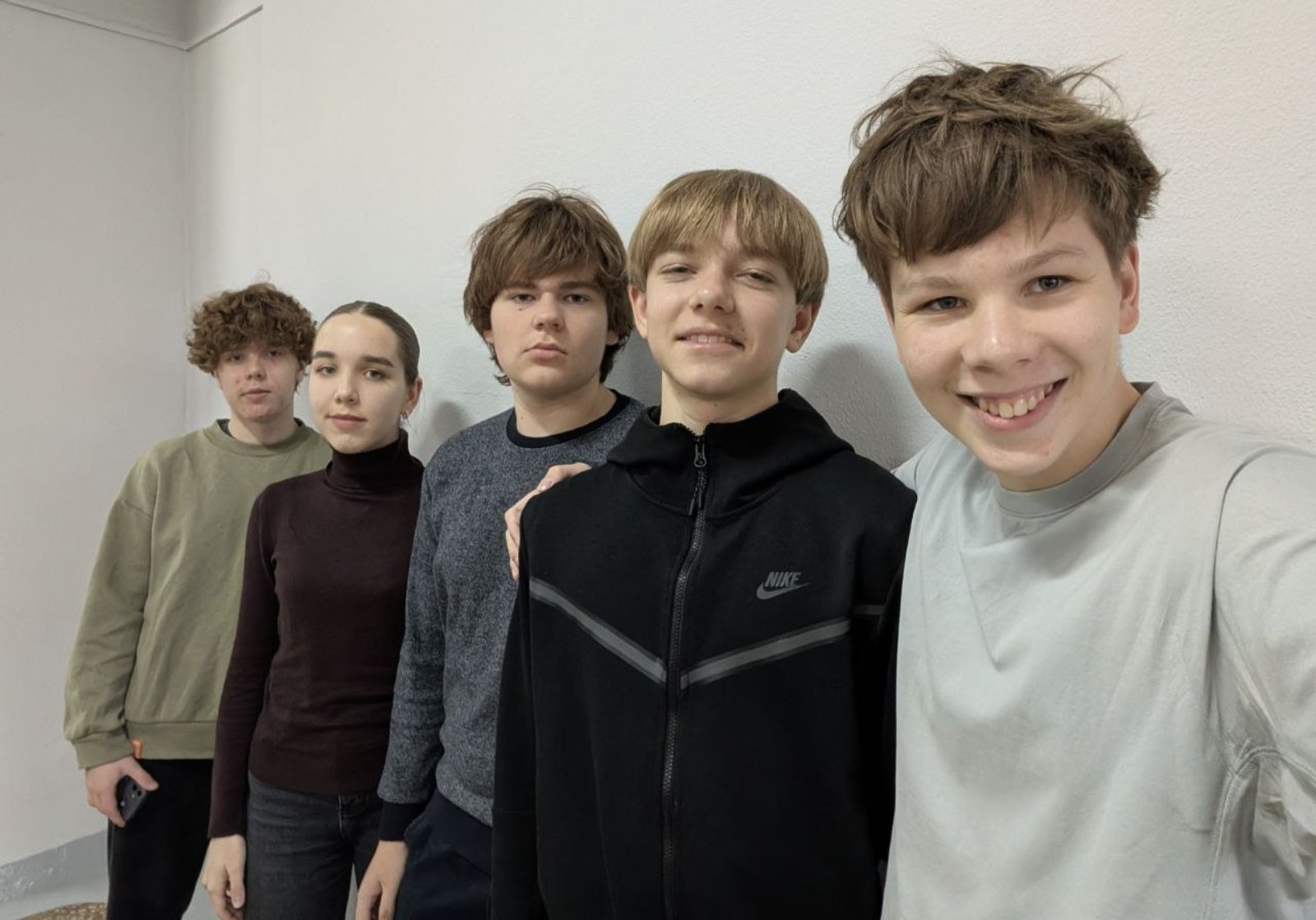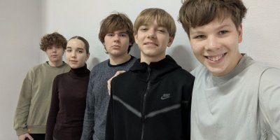 "Ньютонята": Вайтович Александр, Князев Максим, Мельник Артур (все IX "А" класс), Антропов Никита (IX "Б" класс) и капитан Шагун Ульяна (IX "Б" класс).