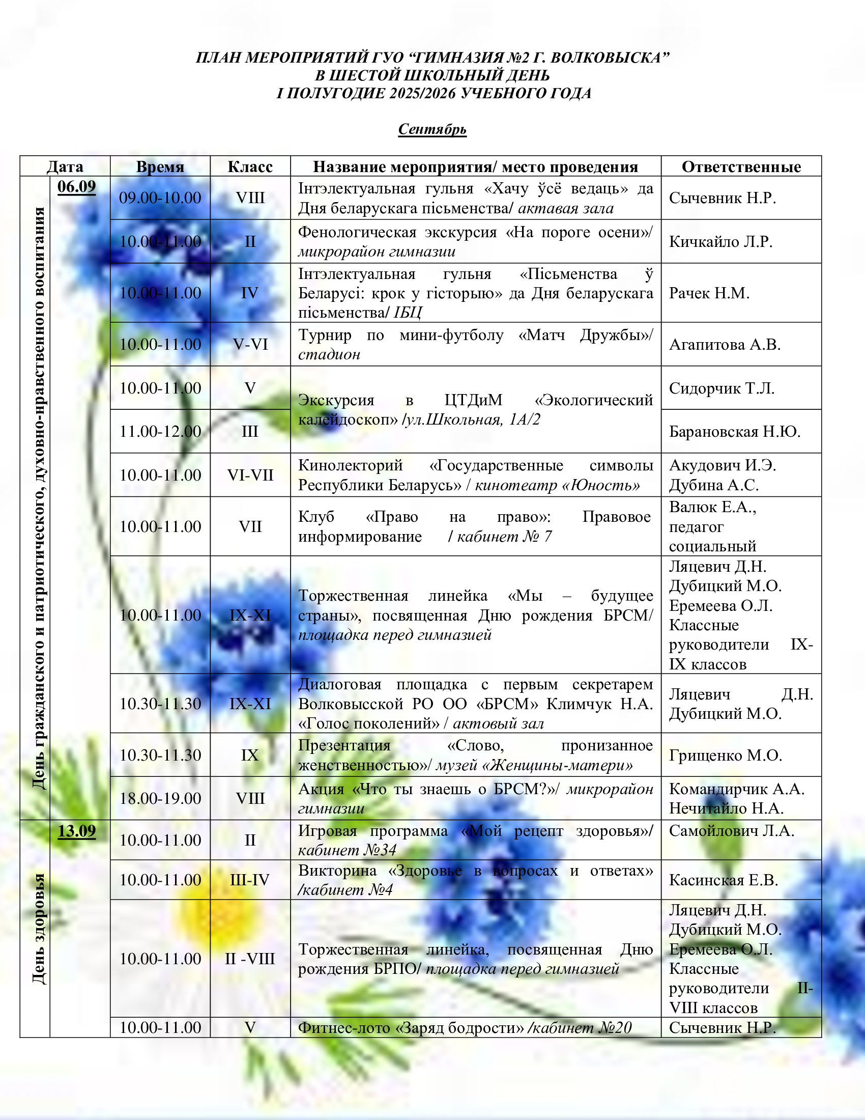 Главная Учащимся Шестой школьный день Планирование работы шестого школьного дня Планирование работы шестого школьного дня