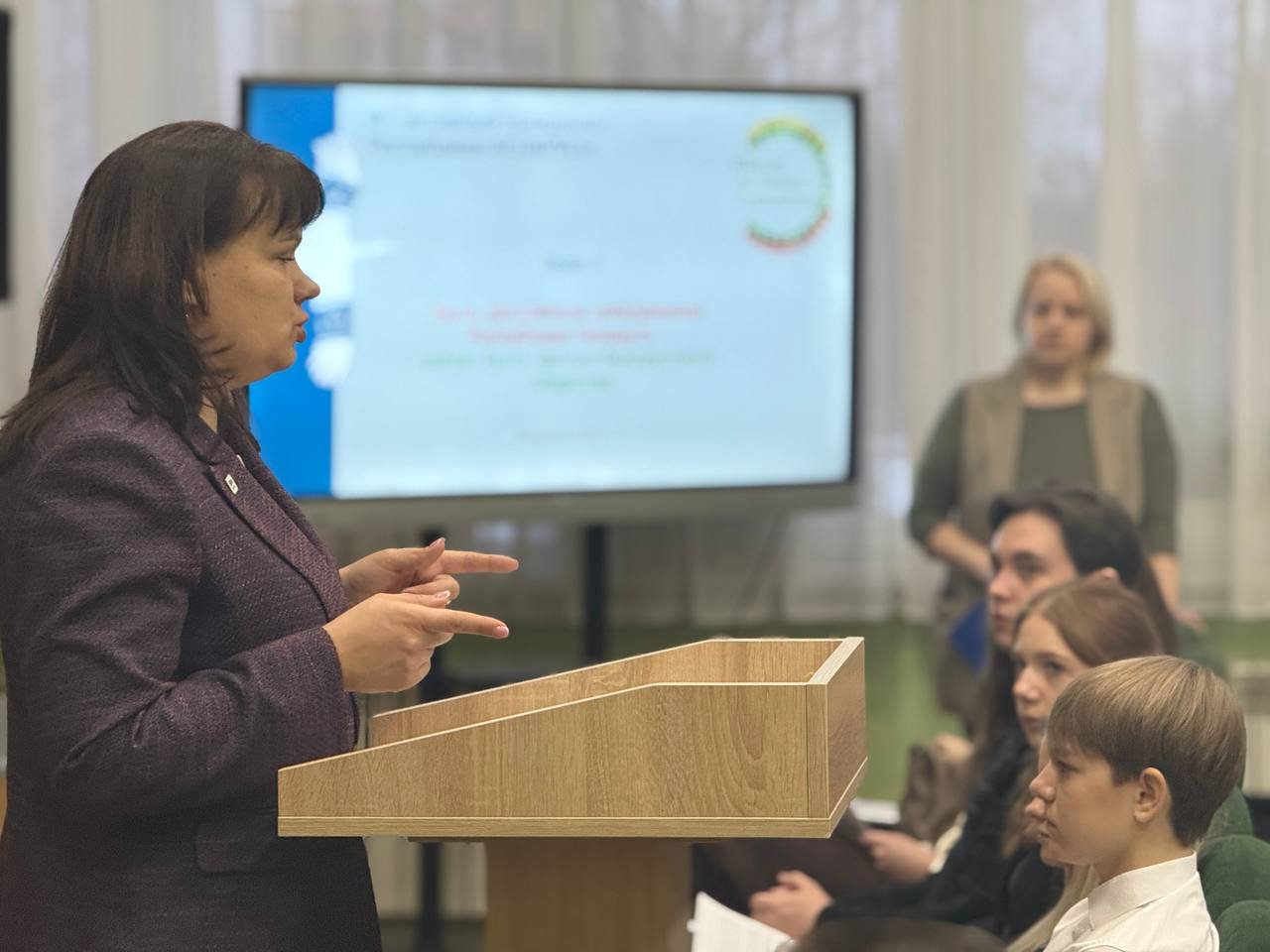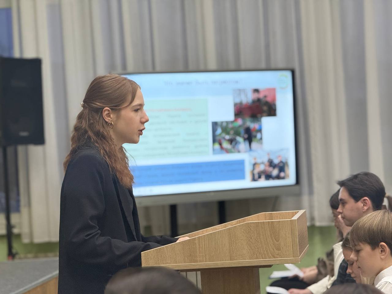 26 февраля 2026 года в гимназии в рамках республиканского информационно-образовательного проекта ШАГ (Школа Активного Гражданина) прошло занятие по теме "Быть достойным гражданином Республики Беларусь - значит быть частью белорусского общества". Гостьей мероприятия стала была Третьяк Елена Анатольевна, генеральный директор ОАО "Волковысский мясокомбинат". В ходе встречи учащиеся вспомнили такие понятия как "патриот" и " патриотизм", обсудили, что значит быть патриотом согласно Конституции Республики Беларусь. Особое внимание было уделено трудовой и учебной деятельности на благо Родины, особенно вклад молодого поколения в экономическое, социальное развитие нашего государства.