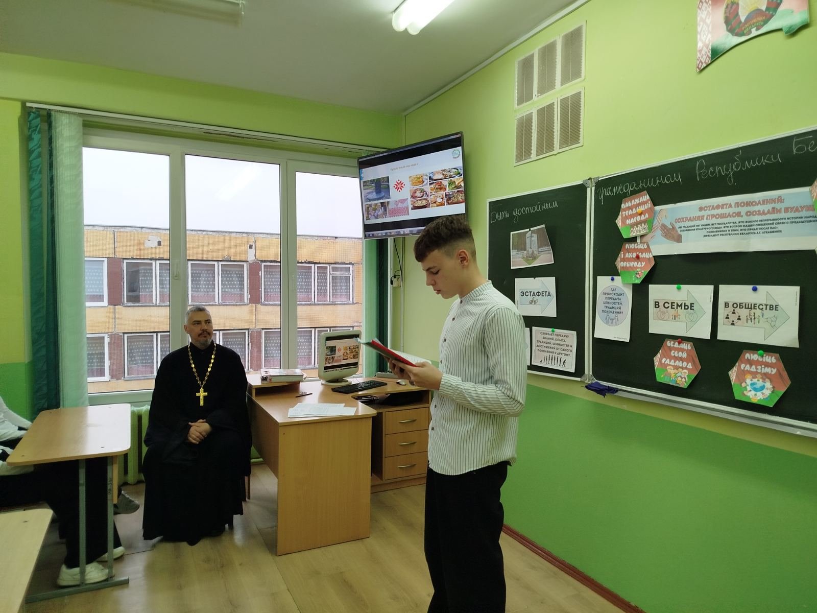 Гостем мероприятия стал клирик прихода храма святителя Николая Чудотворца города Волковыска иерей Георгий Суворов. Отец Георгий отметил, что истинные ценности — это вера, патриотизм, уважение к старшим и крепкая семья. В современном мире, полном информационного шума, важно уметь отличать добро от зла и опираться на многовековые традиции: историко-культурные — язык и память о предках; природные — бережное отношение к родной земле; семейные — верность и уважение к старшим. Подобные беседы помогают молодежи осознать свою связь с историей и сформировать прочный нравственный стержень. В Год белорусской женщины такие мероприятия приобретают особую значимость, ведь именно женщина, мать, хранительница семейного очага является главным носителем и передатчиком духовных ценностей из поколения в поколение. Воспитание у молодежи уважения к традициям, любви к Родине и понимания важности крепкой семьи — это вклад в будущее нашей страны, в ее демографическую безопасность и духовное процветание.