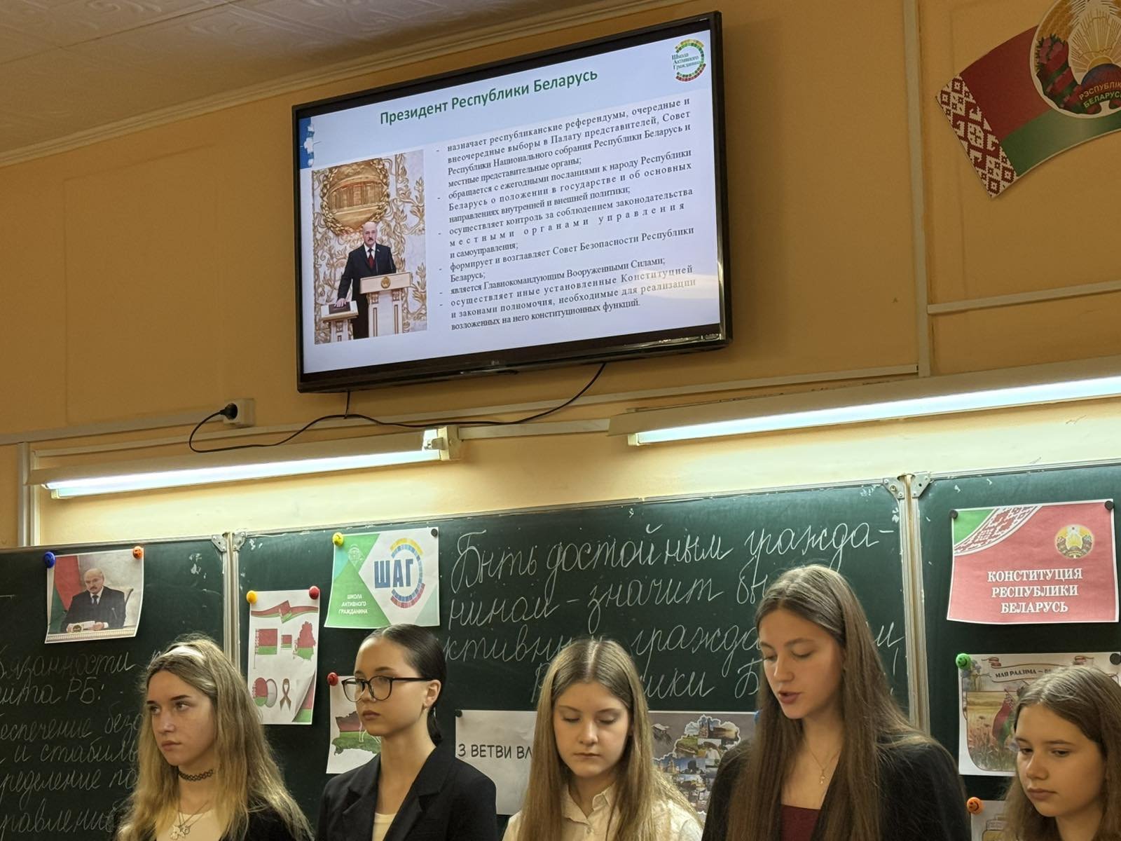 Особое внимание было уделено обсуждению прав и обязанностей Президента Республики Беларусь, как гаранта Конституции, национального единства и независимости страны. Учащиеся узнали, за какие заслуги граждане удостаиваются государственных наград и премий, и какие ценности лежат в основе этих поощрений.