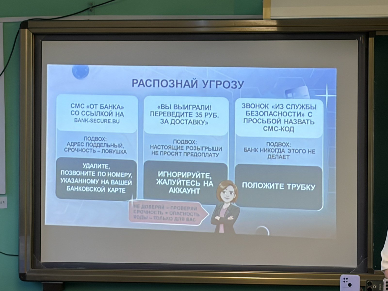 Кроме того, особое внимание было уделено обучению детей распознаванию финансовых мошенничеств и защите персональных данных. Наши ученики узнали, как обезопасить себя и избежать рисков при пользовании банковскими картами и онлайн-сервисами.