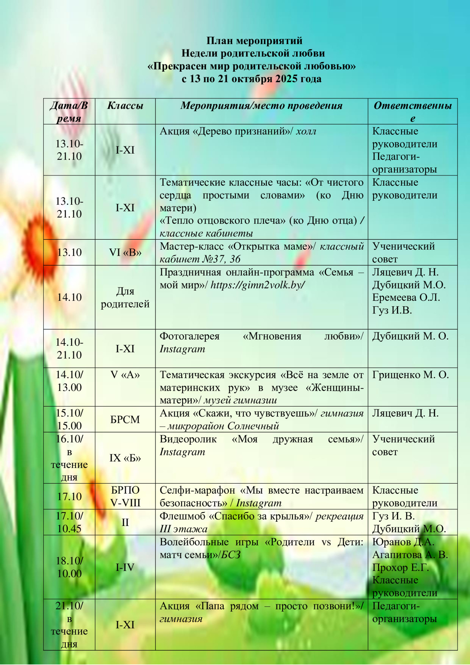 Главная Учащимся Тематические недели Неделя родительской любви Неделя родительской любви 27 октября 2025