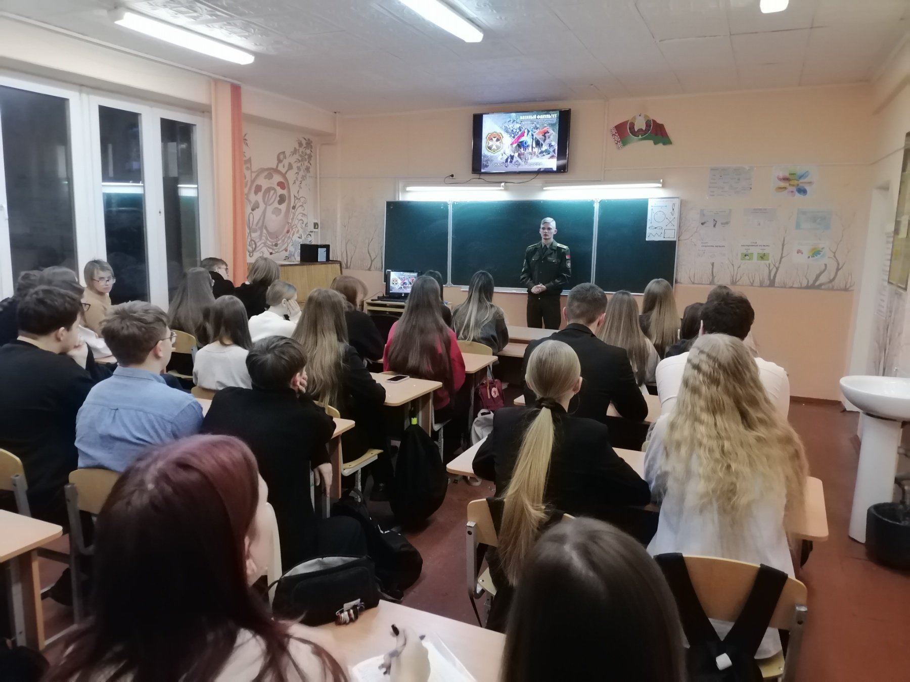 Сегодня в стенах #gimn2volk состоялась встреча учащихся XI-х, а также учащихся, которые посещают факультатив «Готовы Родине служить», с выпускником гимназии — а ныне курсантом Военного факультета Гродненского государственного университета имени Янки Купалы.