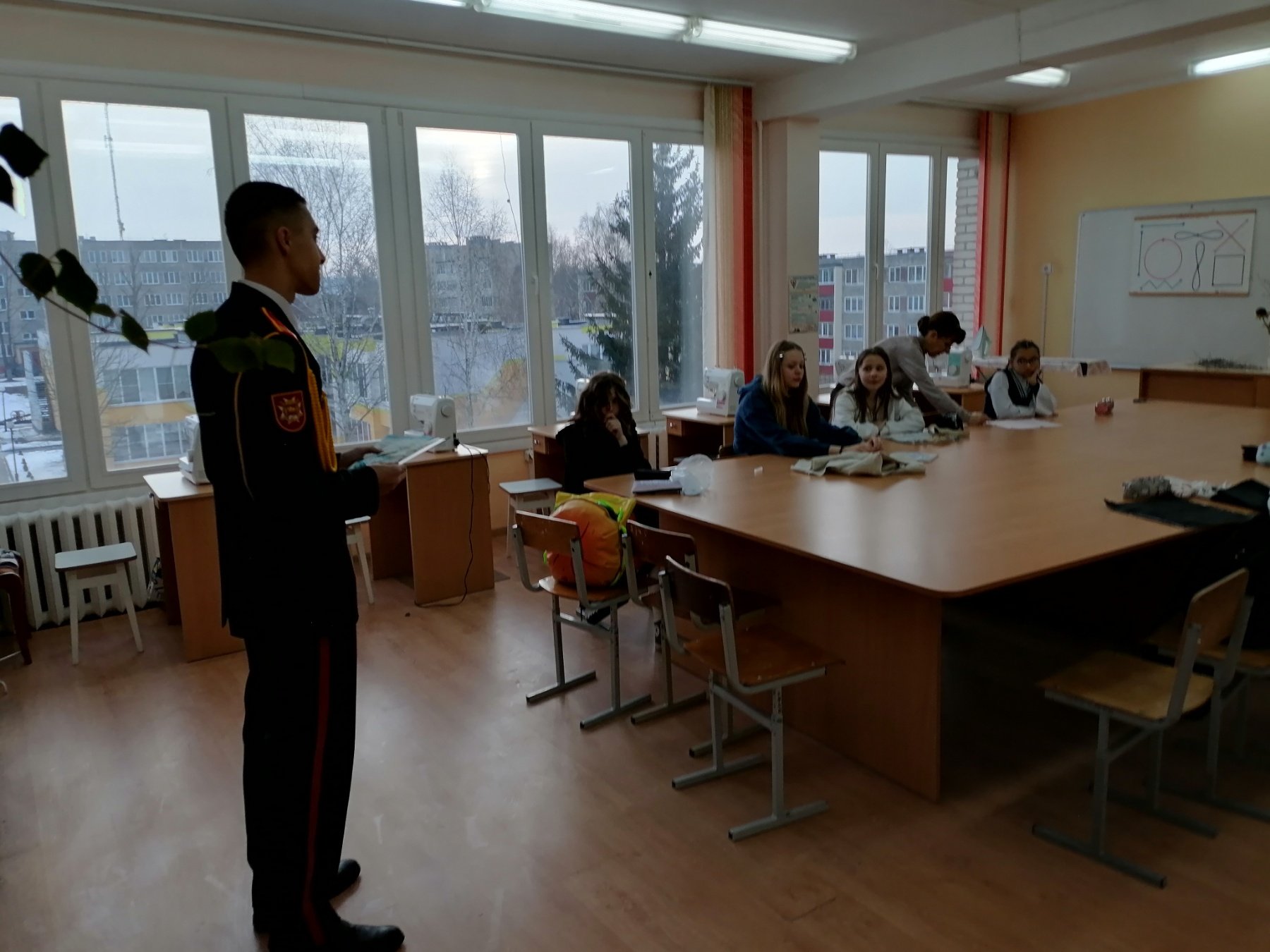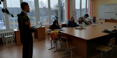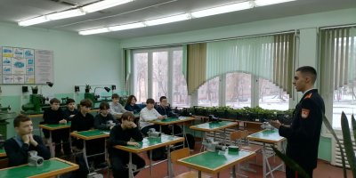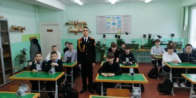 Кадет поделился с ребятами увлекательной информацией о жизни в училище: