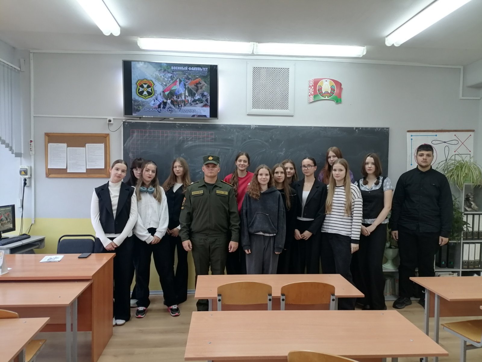 Сегодня в стенах #gimn2volk состоялась встреча учащихся, посещающих факультатив «Готовы Родине служить», с выпускником гимназии, а ныне курсантом Военного факультета Гродненского государственного университета имени Янки Купалы.