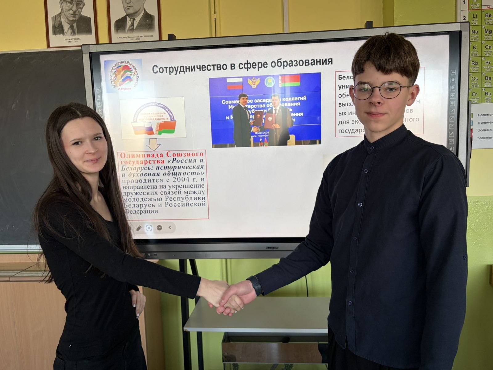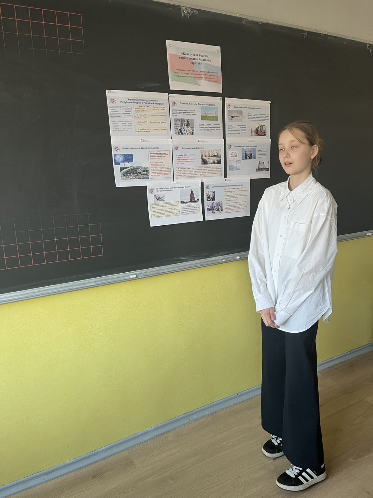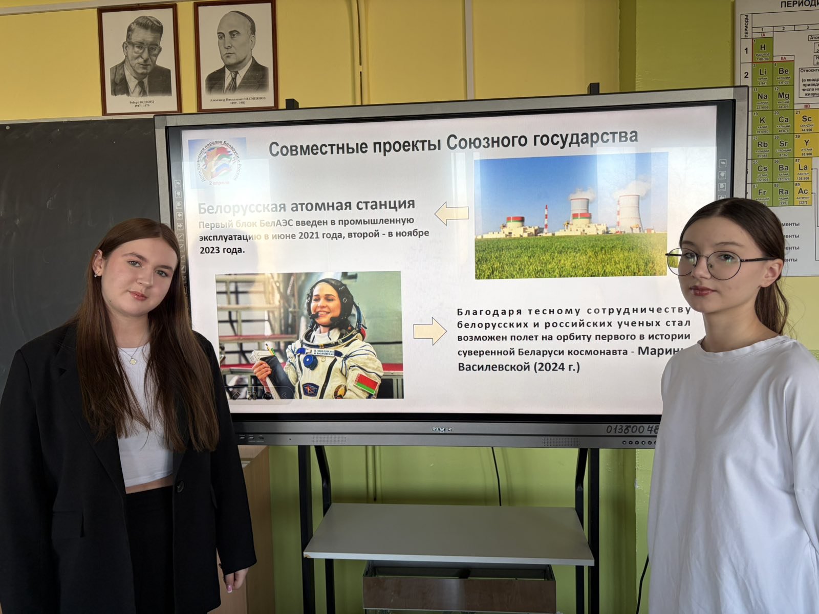 Этот праздник символизирует нашу общую историю, культурные ценности и крепкую дружбу. На уроке мы говорили о том, как важно беречь братские отношения между нашими странами, о совместных достижениях и проектах союзного государства.