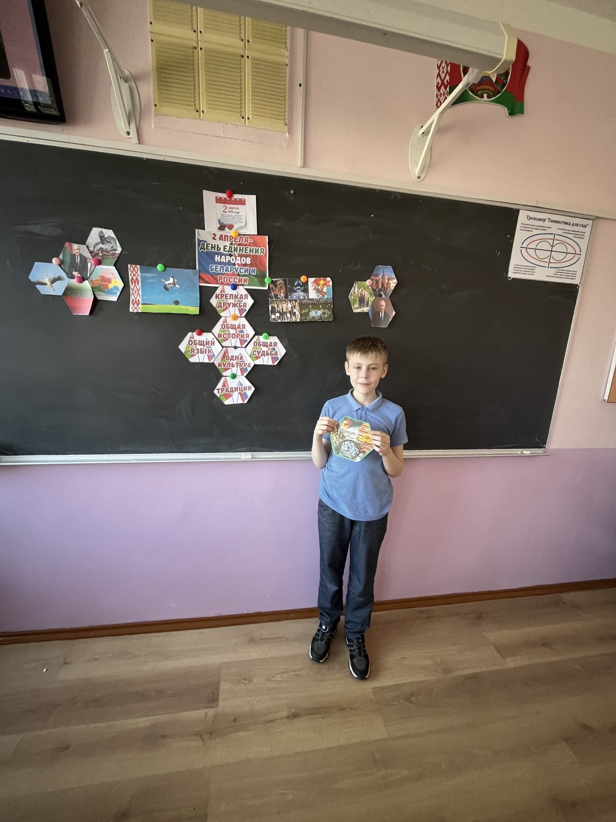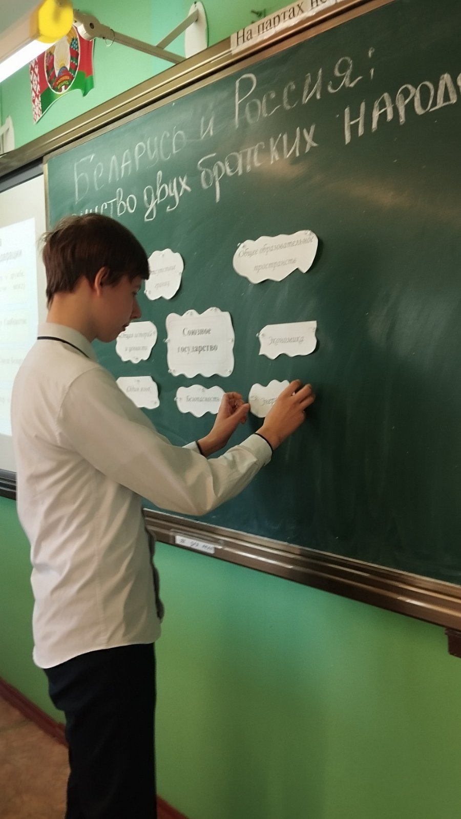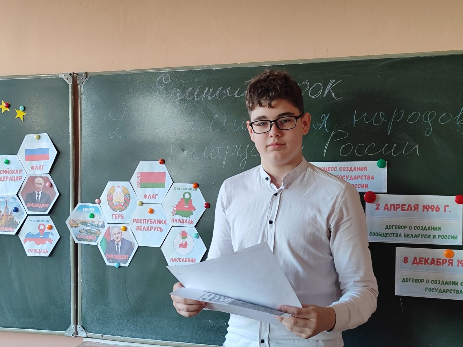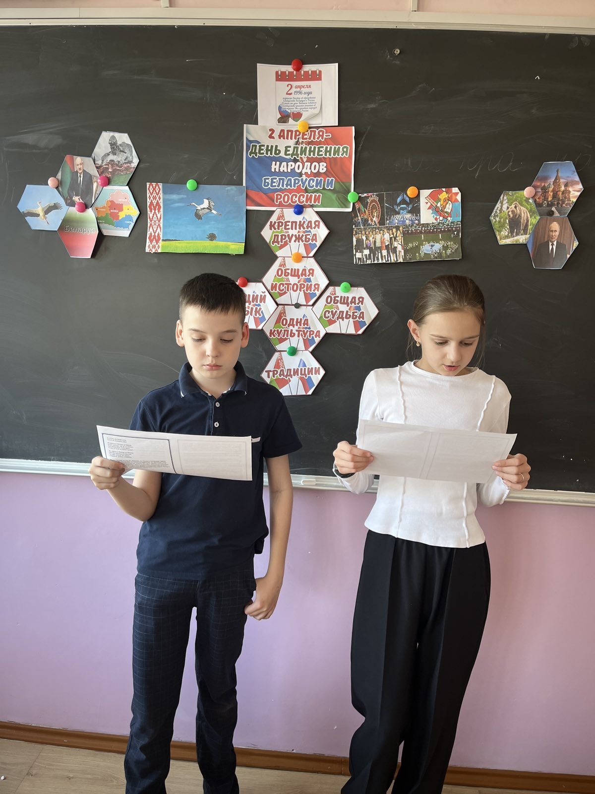 Этот праздник символизирует нашу общую историю, культурные ценности и крепкую дружбу. На уроке мы говорили о том, как важно беречь братские отношения между нашими странами, о совместных достижениях и проектах союзного государства.