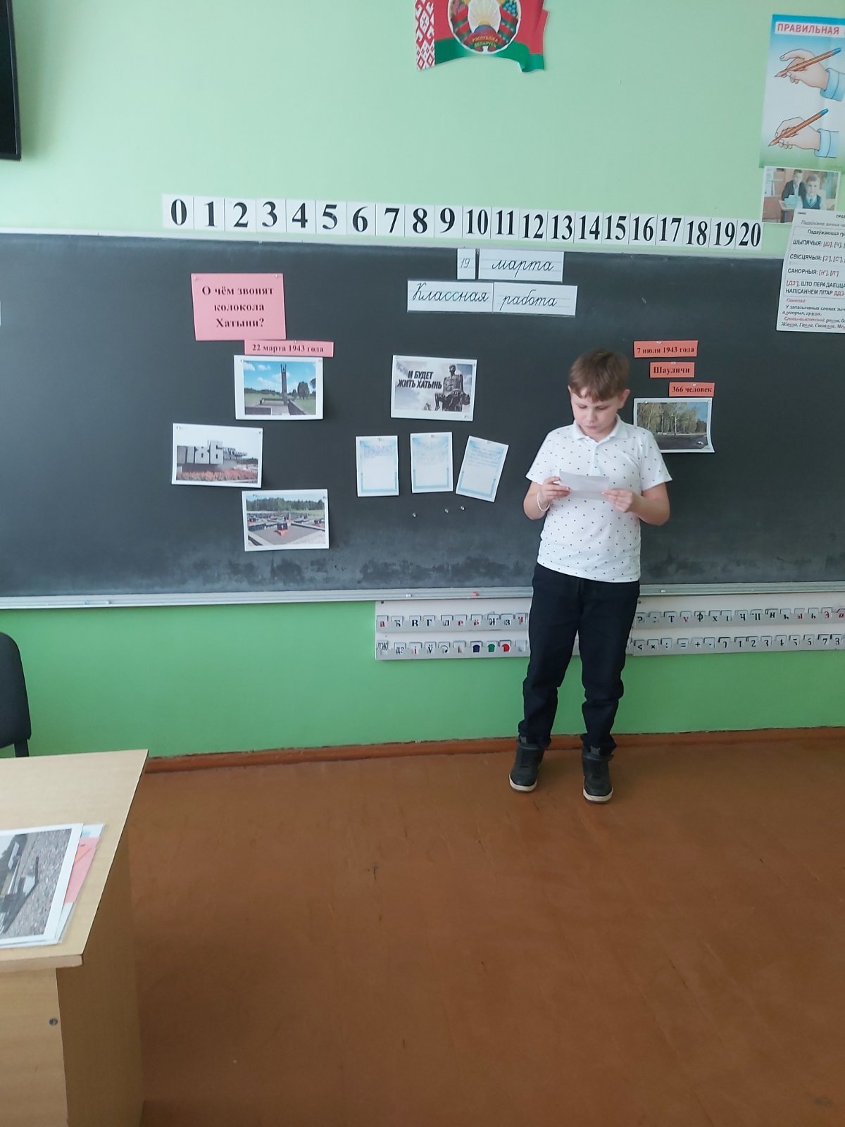 В рамках единого урока, посвященного трагедии в деревне Хатынь, в VII-VIII классах была организована встреча учащихся с клириком прихода храма святителя Николая Чудотворца города Волковыска иереем Георгием Суворовым. Ребята говорили о том, как важно хранить память о тех страшных страницах истории, чтобы они никогда не повторились.